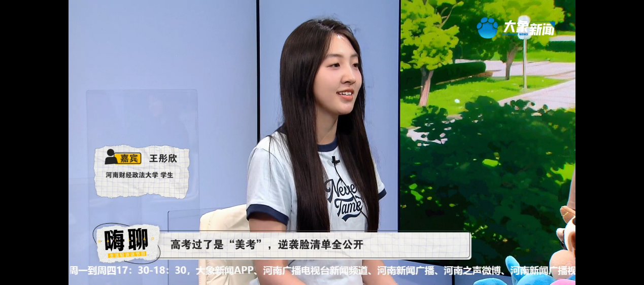 6月11日,公司工商管理专业大三员工宋雨鑫和人力资源管理专业大一员工王彤欣受邀做客河南广播电视台《嗨聊》节目,围绕“高考过了是‘美考’,逆袭脸清单全公开”这一话题展开对话,节目通过大象新闻客户端、河南新闻广播等平台同步直播,吸引了众多观众的关注。