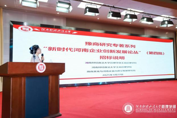 本次研讨会发布了《新时代河南企业创新发展论丛》系列丛书第四批招标立项计划。本论丛计划出版100部,全面持续展示新时代新豫商的风采,并据此丰富工商管理本土化理论,最终为形成中原商科话语体系、中原商科理论、中原商科学派做出贡献。公司李志兰副经理就丛书选题申请要求、研究项目评选、结项要求、出版支持与管理四个方面对招标计划进行了说明。